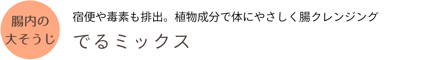 このような様々な問題を引き起こす老廃物(宿便)を一気に取り去り、腸内バランスを整えるための「善玉菌」を腸内に補給するのが「でるもんね」なのです。