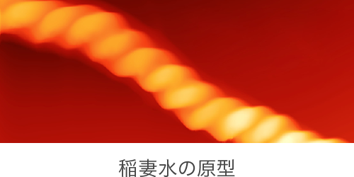 日本では、稲妻(雷)が落ちるとその放電現象によって、土壌がアルカリ化して浄化され肥沃になり、穀物がよく育つといわれています。「稲妻」の名も、「稲が良く育つ」ことが起源となっているそうですが、これと同じ原理で、稲妻の放電が水に働きかけることで、非常に安定したダブル・ヘリックス水が作られるのです。そうした由来から、私たちはこの水を独自に「稲妻水」と命名しました。