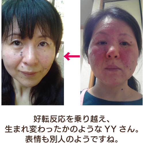 私の場合は、色々良い事を沢山やっているのに、好転反応も沢山でて、口の周りのボツボツ、痰、咳、熱が次々起きましたが、お水を沢山飲んで乗り切り、人生の中で今が一番調子がいいです。