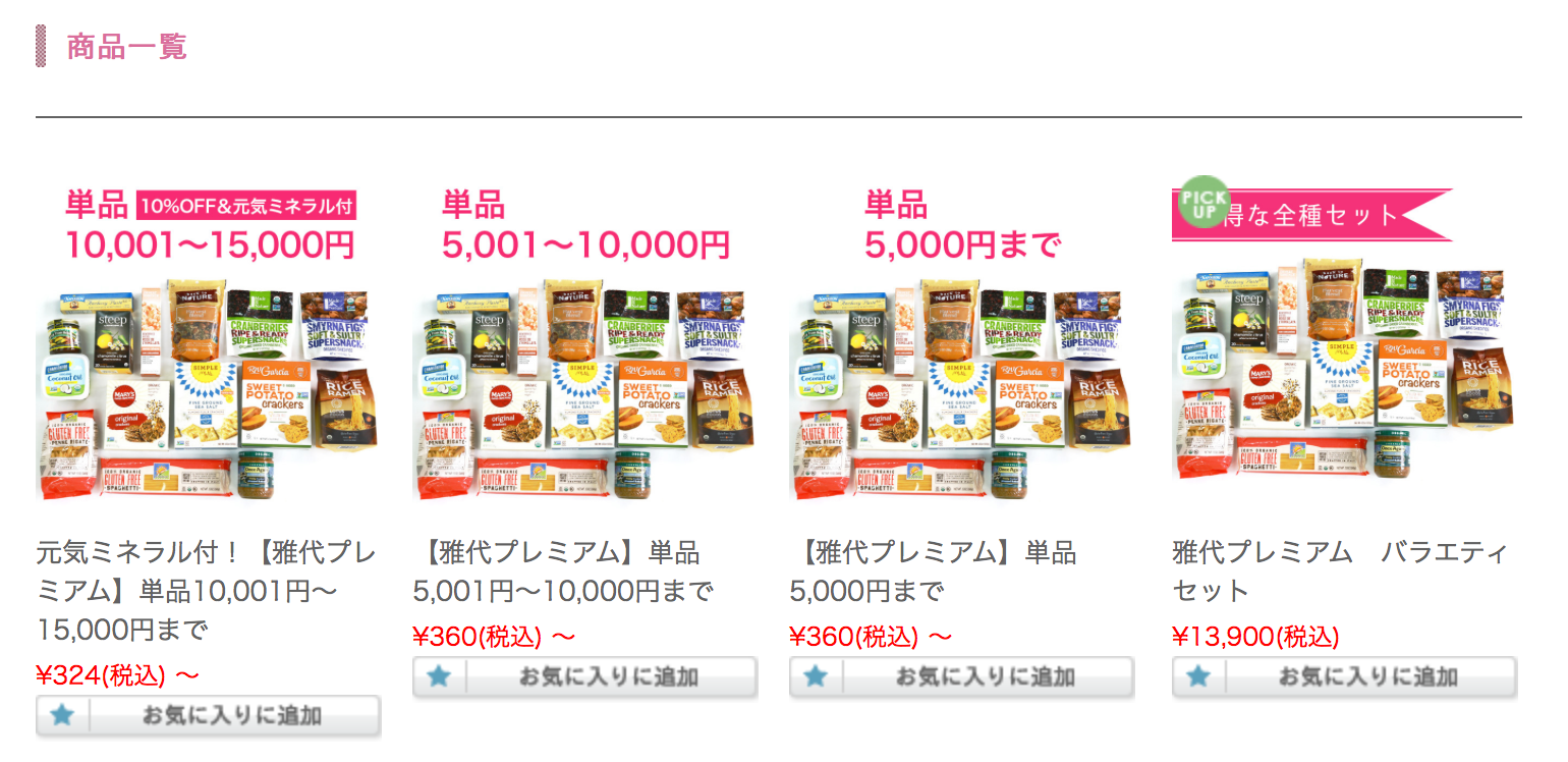 3、欲しいアイテムの合計金額が該当する商品から注文してください