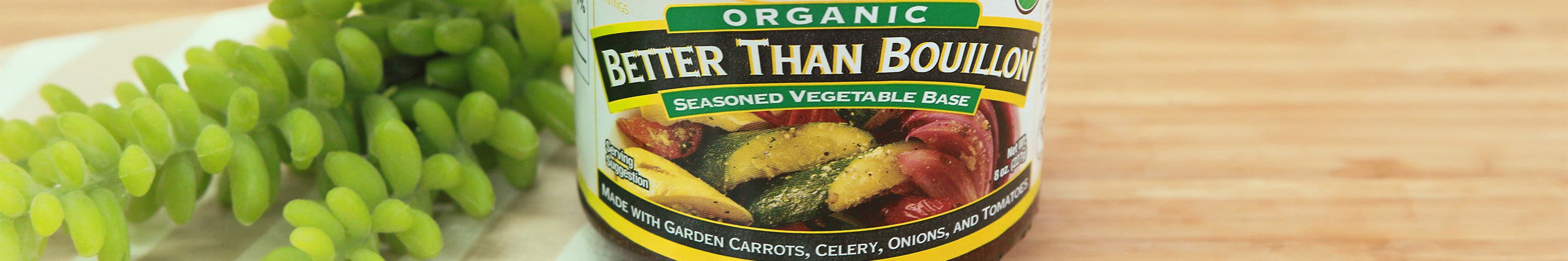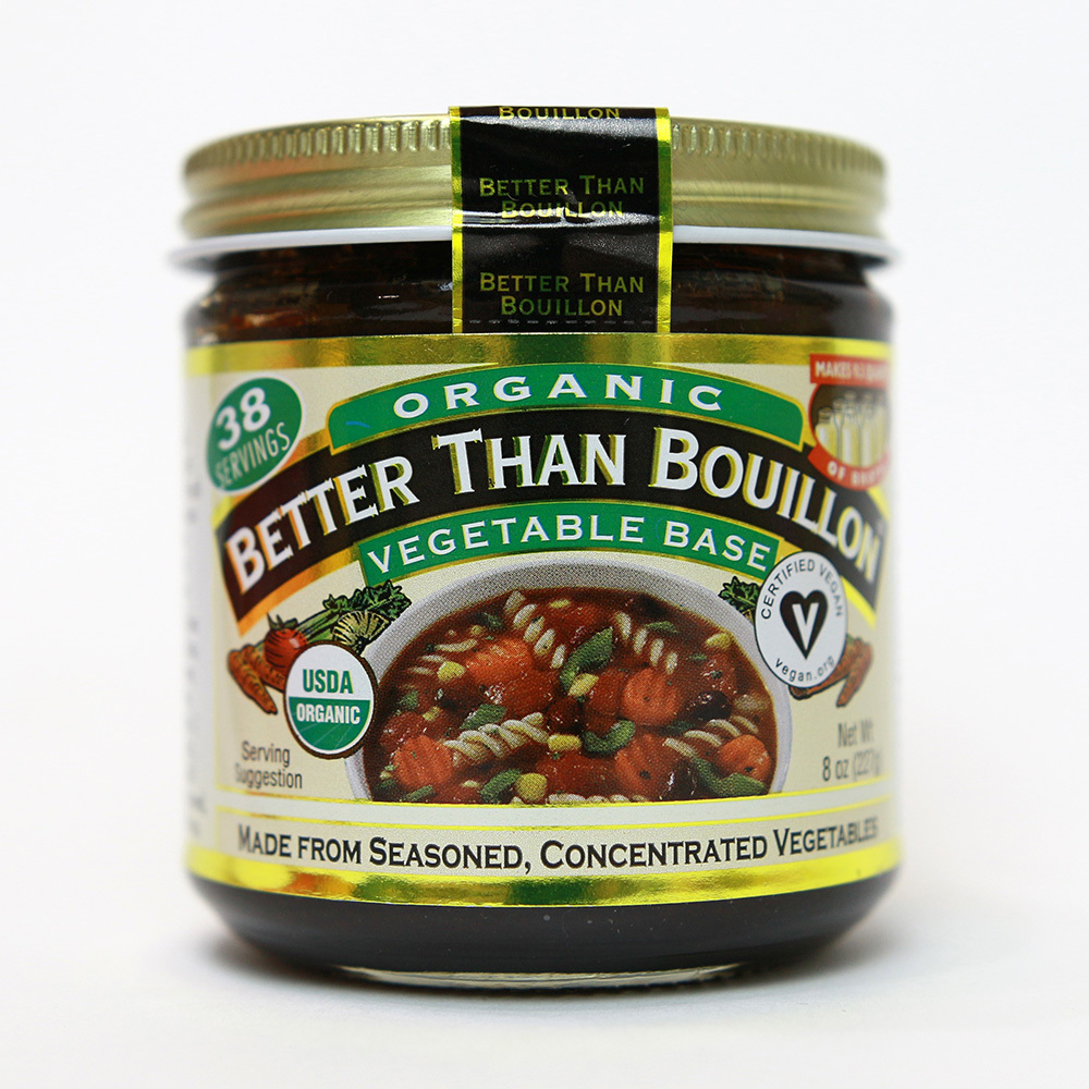 有機野菜、有機濃縮野菜ジュース(人参、セロリ、タマネギ、トマト)、塩、有機醤油(水、有機大豆、塩、有機アルコール)、有機サトウキビ、有機マルトデキストリン、有機食用でんぷん、酵母エキス、有機タマネギ粉末、ニンニク粉末、有機スパイス、大豆使用