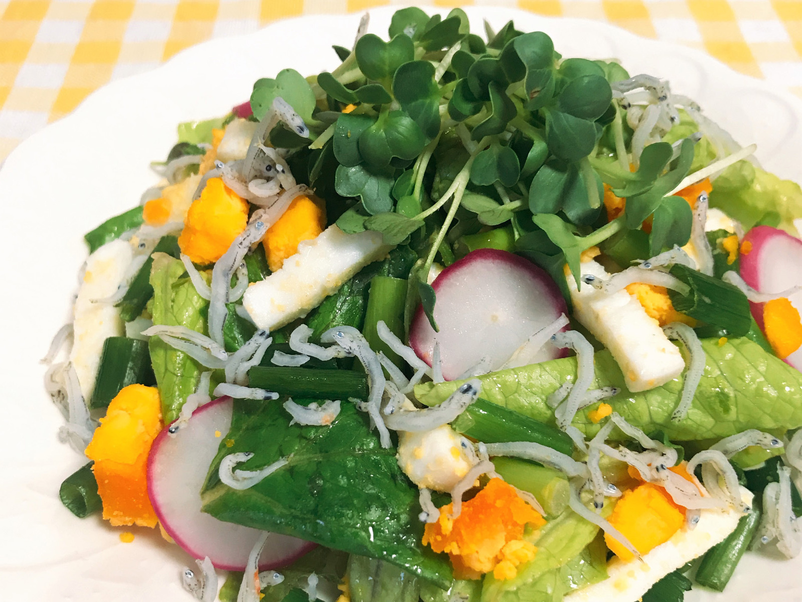 ジャコかしらす、スプラウト、ラディッシュを入れると栄養と美味しさ倍増!