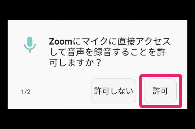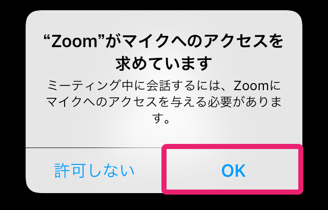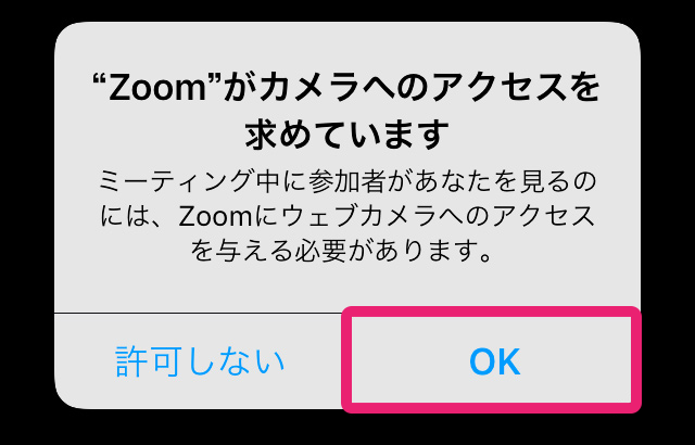 「Zoomへのアクセス」「カメラにアクセス」「マイクにアクセス」などの確認メッセージが表示されたら、許可する・しない を選択します。