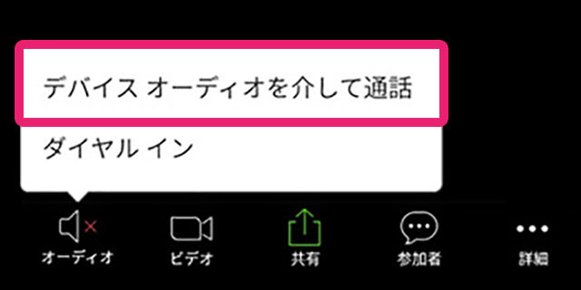 ②「デバイスオーディオを介して通話」をタップします。